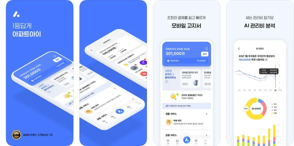 이제는 아파트 관리비도 앱으로 관리하는 시대입니다. 관리비를 관리하는 앱인 아파트아이로 관리하세요. 아파트아이는 전국 30,000여 단지의 1,200만 세대에 다양한 맞춤형 생활지원 서비스를 제공하고 있습니다. 전국 모든 아파트의 아파트관리비를 관리할 수 있는 아파트아이 앱을 지금 바로 다운받아보세요.